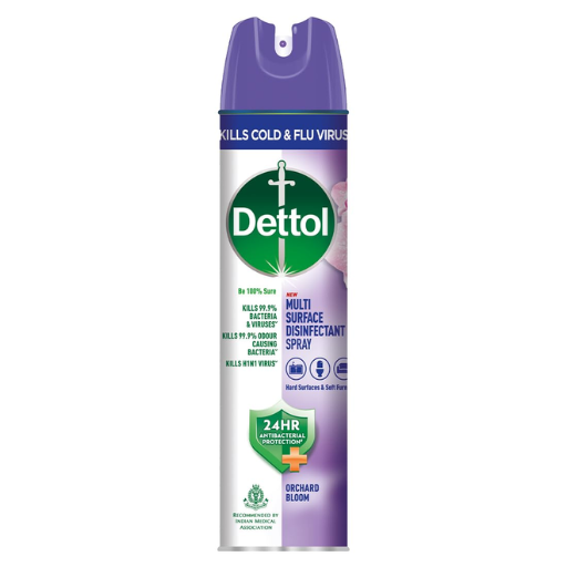 Dettol disinfectant spray protects you and your family from 100 illness causing germs, bacteria and viruses. This alcohol (denatured) surface disinfectant spray sanitizes your home and eliminates odour causing bacteria. It helps in killing cold and flu viruses, including h1n1 virus. Dettol disinfectant spray can be used in toilet area, dustbin, kitchen sink, shower bases, taps, sofas, curtains, carpets, car seats etc., Leaving everything clean and fresh. It safely kills germs on everyday items and leaves behind a pleasant pine fragrance. This multipurpose disinfectant cleaner for home is recommended by Indian medical association. Usage: Shake dettol disinfectant spray well. Hold spray 15-20 cm from pre cleaned surface and spray surface until covered with mist. Allow to air dry, no need to wipe. Do not use on polished wood, painted surface or acrylic plastics