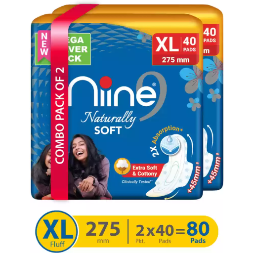 Niine Sanitary Napkins come with a extra soft & cottony top sheet for extra comfort throughout the napkin usage time. Rash free product, Soft Edge Arms cotton help prevent rashes during and after periods. Rapid 2X Absorption to stay secure and absorb well during your periods. Fresh Fragrance helps to eliminate bad odour and provides a comfortable feminine protection. No Ink used on pads to help ensure chemical free product in contact with intimate areas